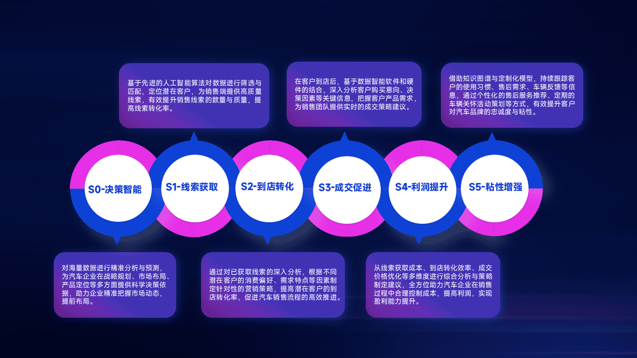 通过拓宽潜在客户来源、、优化线索分配并提高到店转化率,,,以增强销售效率。。。。同时,,,利用线索数据不断优化分析模型,,,有效提升转化率,,扩大营销影响力。。